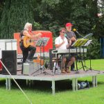 Der Himmel hatte es gut gemeint. Zur Mittagszeit verzogen sich die letzten Wolken. Um 14.00 Uhr waren etwa 80 Senioren eingetroffen, und nach der offiziellen Begrüßung begann man mit dem gemeinsamen Kaffee-Trinken. Hiernach besetzte die Musikgruppe „Gnisse(e)bären“ aus Gnissau die Bühne und unterhielt die Gäste mit Seemannsliedern und heimatlichen Klängen, wobei mitgesungen, sich eingehakt und geschunkelt wurde. Die Besucher unterhielten sich ausgiebig und unter den Zelten prosteten sie sich zu. Denn das macht das Sommerfest der Senioren aus: Freunde und Bekannte, die einander schon lange nicht mehr gesehen haben, kommen zusammen, plaudern und genießen in entspannter Atmosphäre das Sommerfeeling.