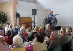 Im Anschluss unterhielt Jan Matuszewska – „Jay`M.“- auf seiner Gitarre und Gesang die Gäste. Er sang bekannte Musikstücke aus den vergangenen 6 Jahrzehnten, von Elvis bis Udo Jürgens pp., weckte zu manche Erinnerung und animierte zum Mitsingen und Schunkeln.