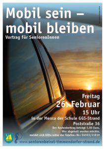 Die Vortragsreihe und Aktivitäten des Seniorenbeirates der Gemeinde Timmendorfer Strand befassen sich mit einem für diese Personengruppe wichtigen Thema, das erst in der jüngsten Vergangenheit wieder einmal für bedauerliche „Schlagzeilen“ und Diskussionen sorgte. Eine der wiederkehrenden Fragen: „sollten sich ältere Menschen ohne Gesundheitscheck bis ins hohe Alter hinterm Steuer setzen dürfen“, wird schon seit vielen Jahren leidenschaftlich und kontrovers diskutiert.