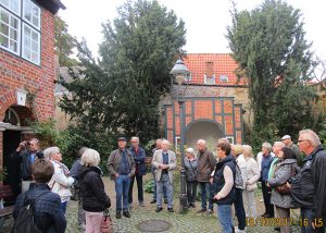 Man ging kreuz und quer durch viele Gänge und Höfe mit ihren romantischen Plätzchen mittendrinn. Zu allem wußte Herr Lietzow geschichtsträchtiges, wissenswertes der aufmerksamen Gruppe zu erzählen. Der Rundgang führte bis zum Dom, entlang der alten Stadtmauer bis zur St. Ägidien Kirche und endete nach zwei Stunden Spaziergang in der Hüxstraße.