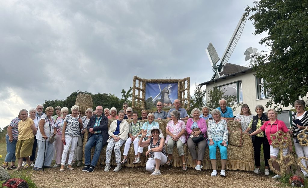 Der Seniorenbeirat erlebte mit 46 Senior*innen einen wunderschönen Tag in der Probstei zum Kornfest. Los ging es am 15. August 2024 um 8.15 Uhr am Niendorfer Schwimmbad bei bedecktem Himmel. Nachdem alle Teilnehmenden eingesammelt wurden ging es über die A1 nach Schönberg, wo unsere Reiseleitung zustieg. Mit ihr erfuhren wir sehr viel über die Probstei und die Entstehung des Kornfestes. Viele Strohfiguren mit politischen und gesellschaftlichem Hintergrund haben wir gesehen. Es erstaunte immer wieder, mit wieviel Können und Arbeit diese Figuren hergestellt wurden. Nach dem üppigen Mittagessen ging unsere Reise weiter. Den Abschluss erlebten wir in einem Hofkaffee mit verschiedenen Torten und Kaffee satt. Vielen Dank sagen wir Möller Reisen, der Reiseleiterin und dem Fahrer Stephan .